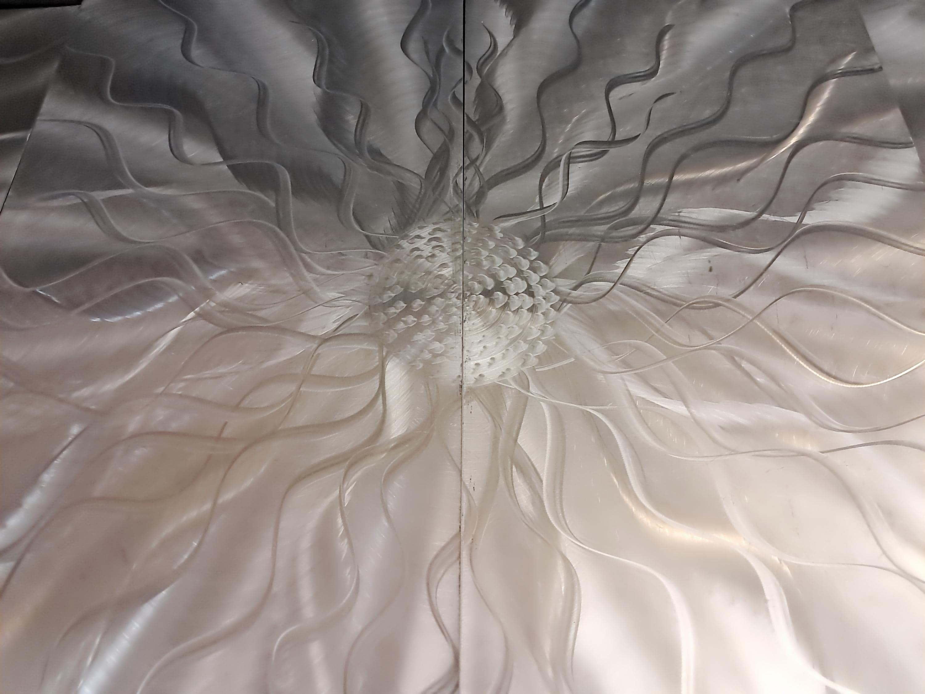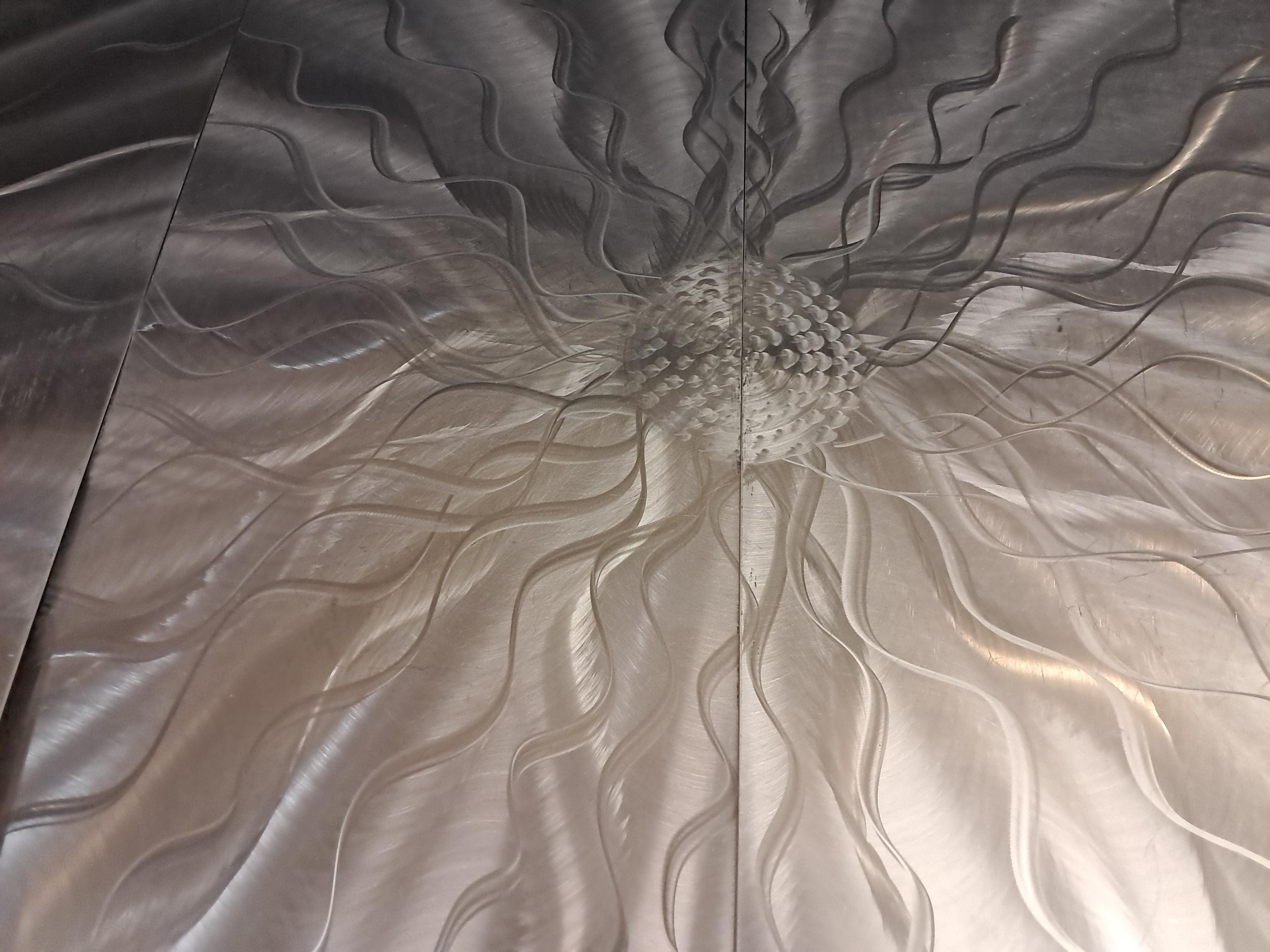 Silver Metal Wall Arts, Hand Grind on Aluminum with 3D, will complement contemporary, modern, or traditional home décor and comes to life in light!
