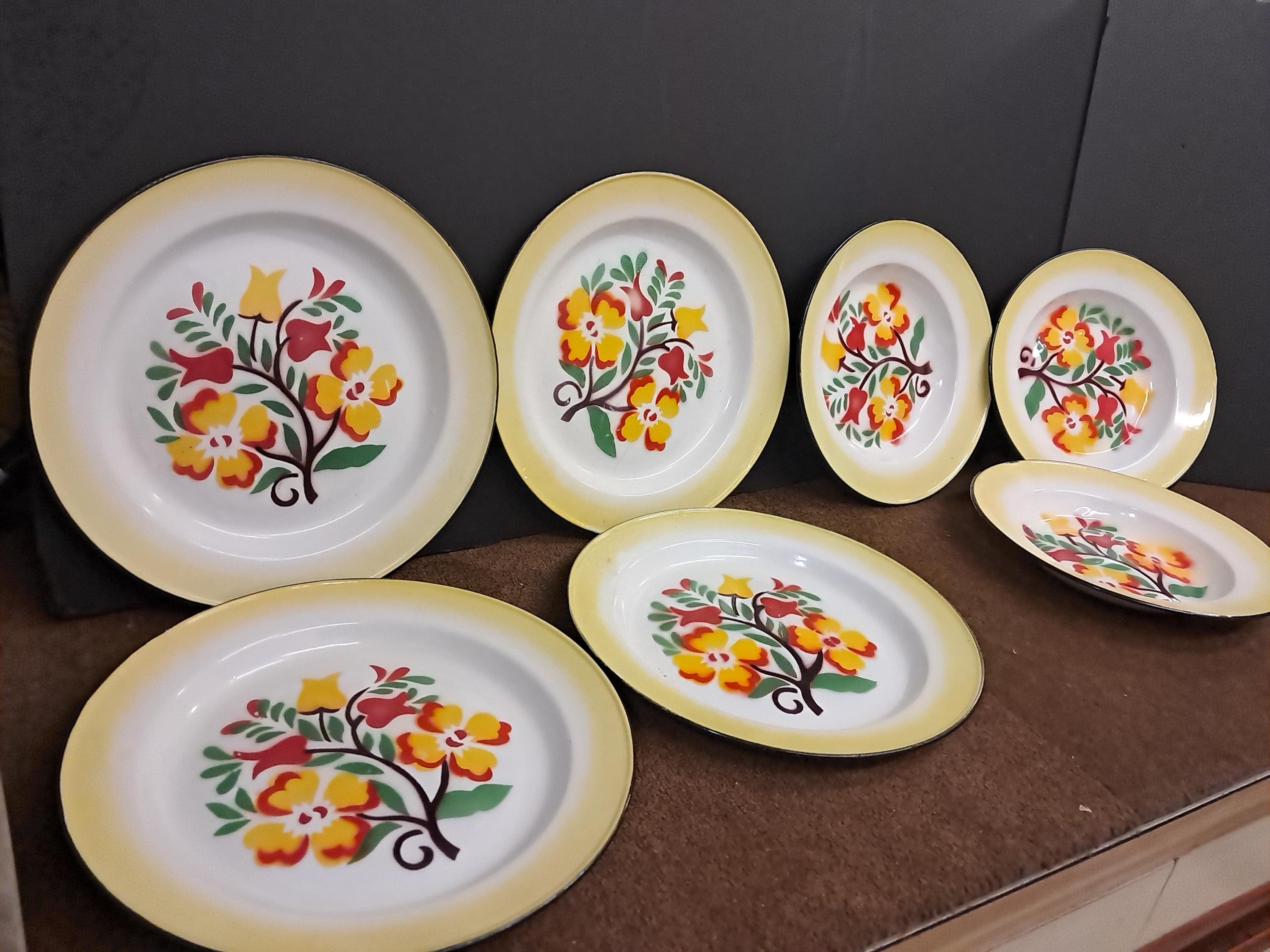 7 Spode Vintage Floral Enamel Meal Dinner Plates