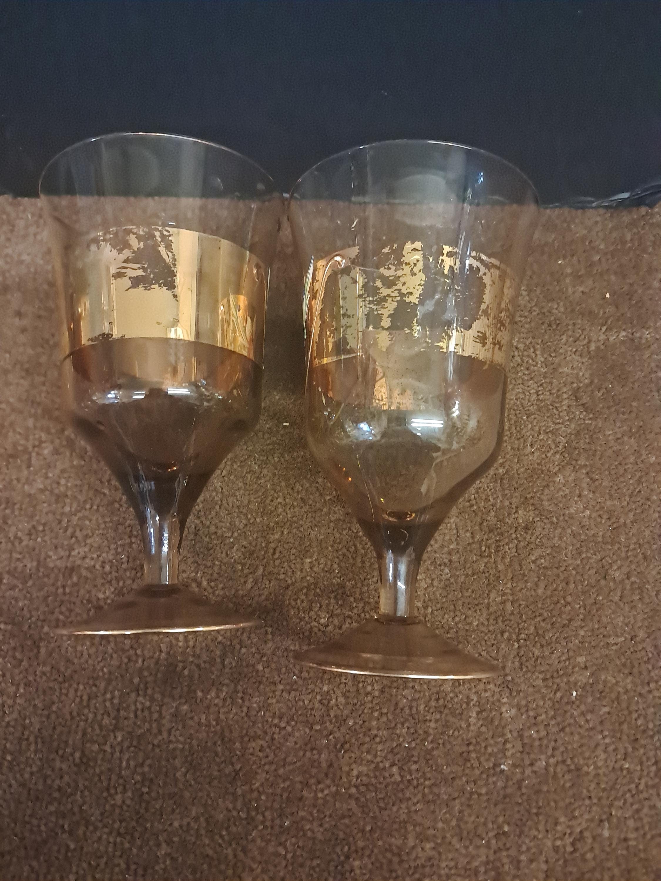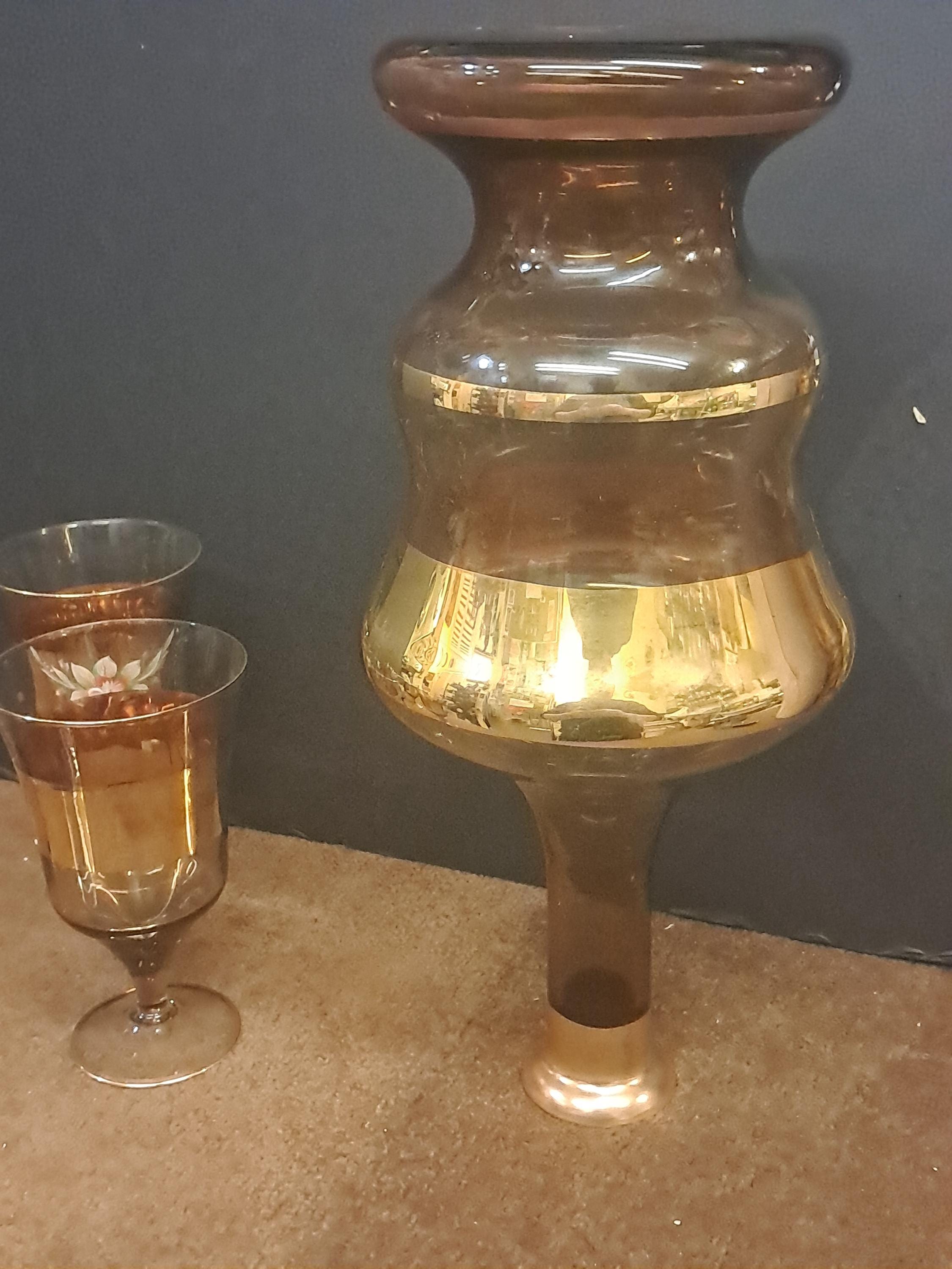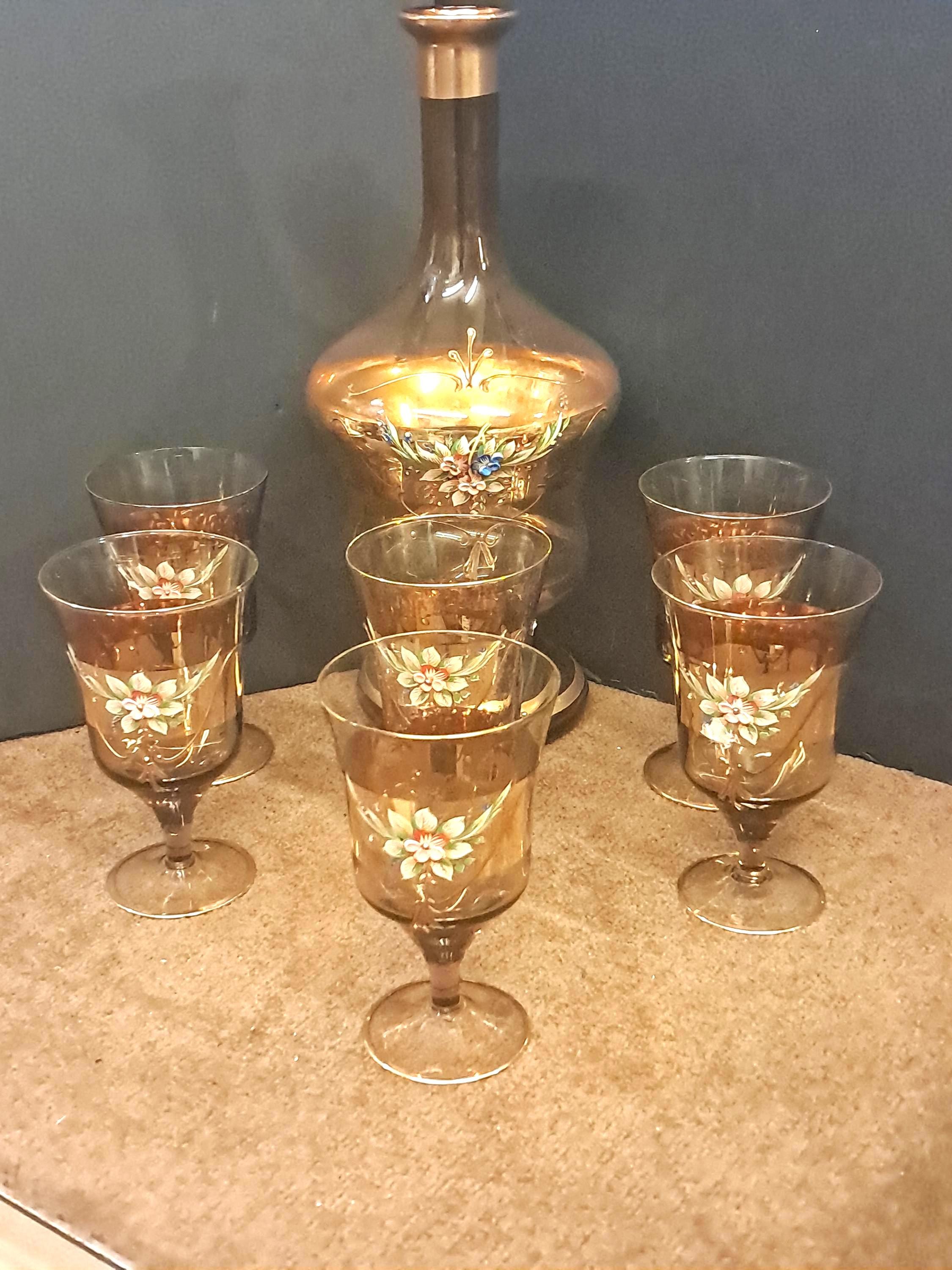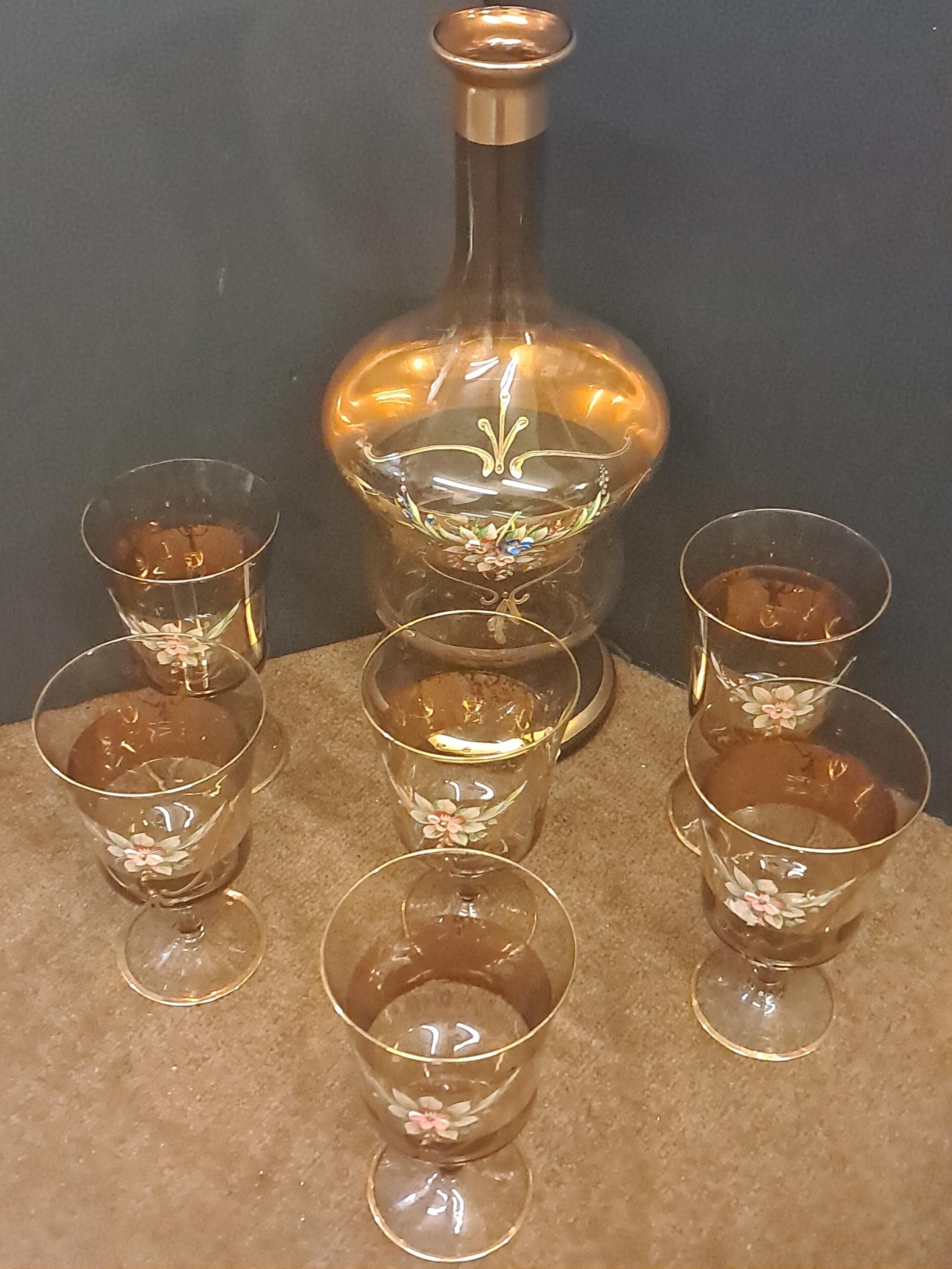 Some signs of wears are visible on two of the footed glasses and back of decanter