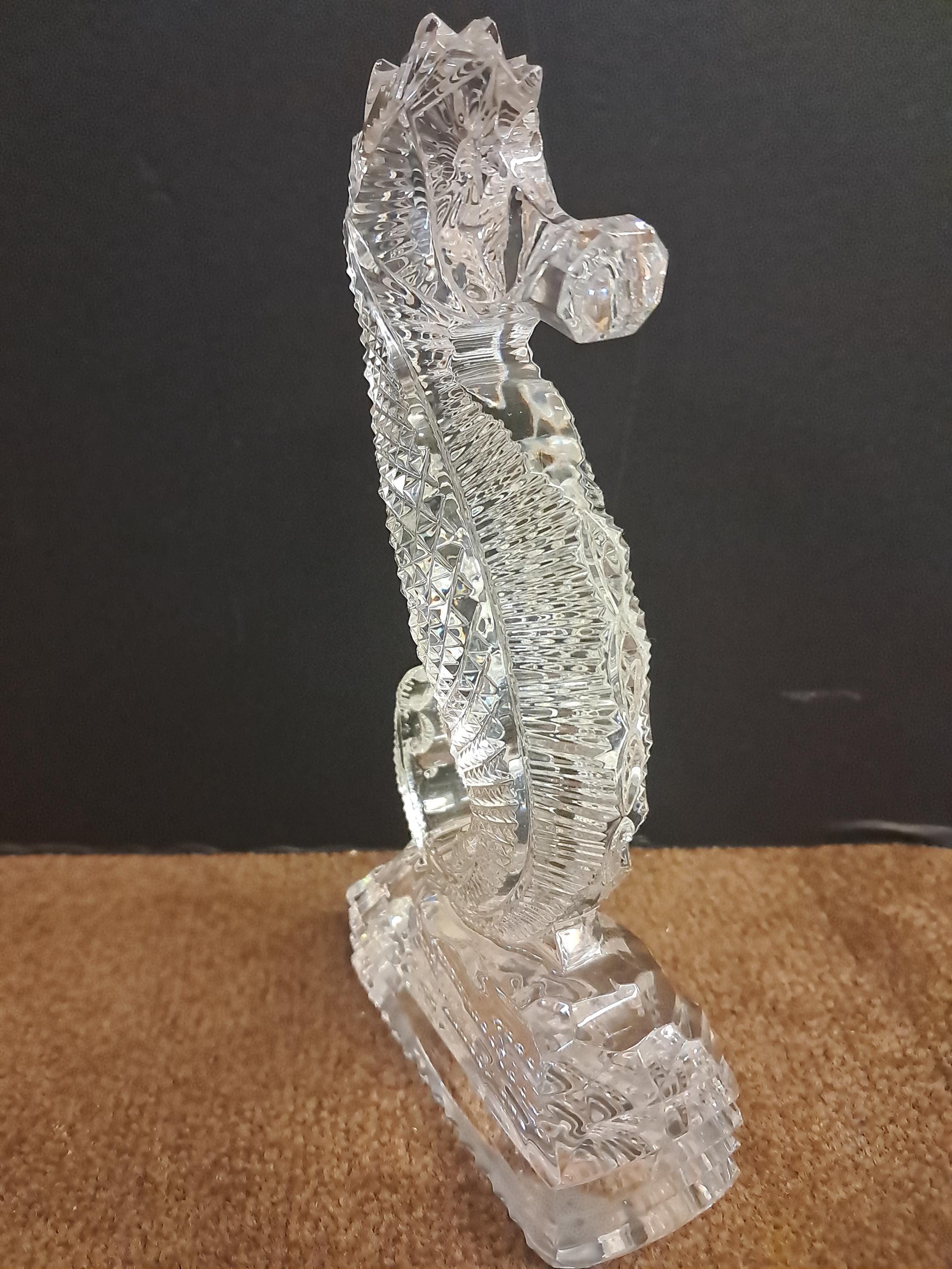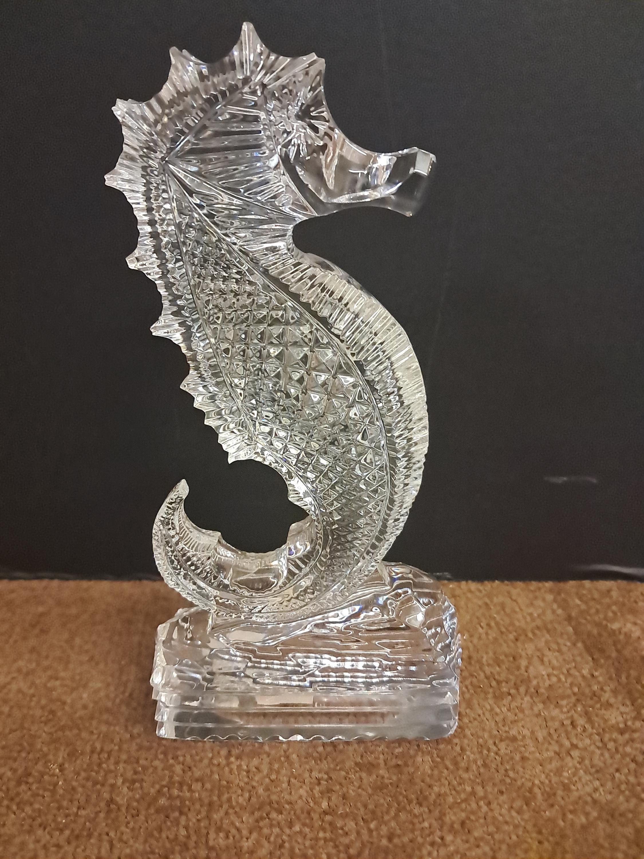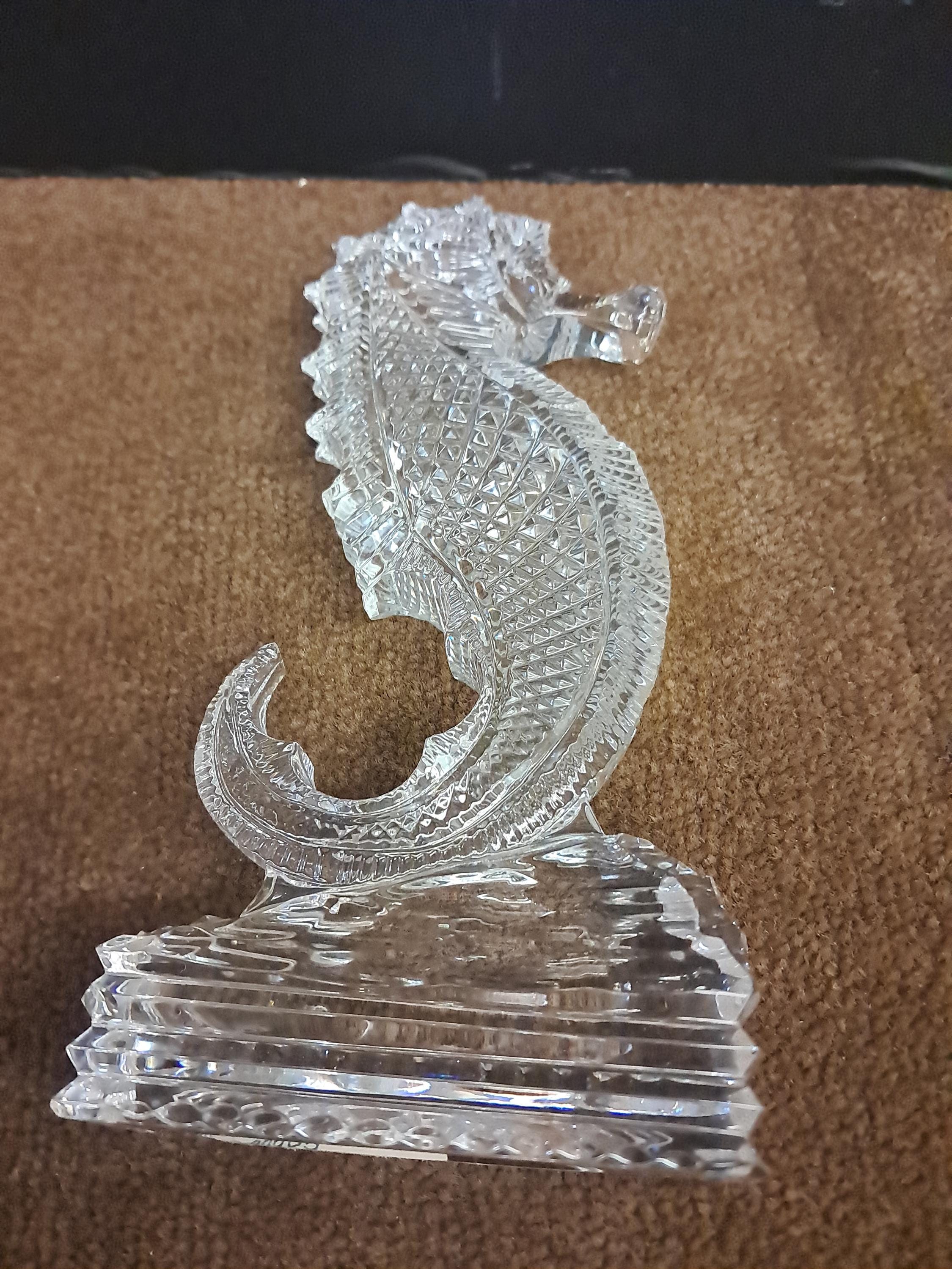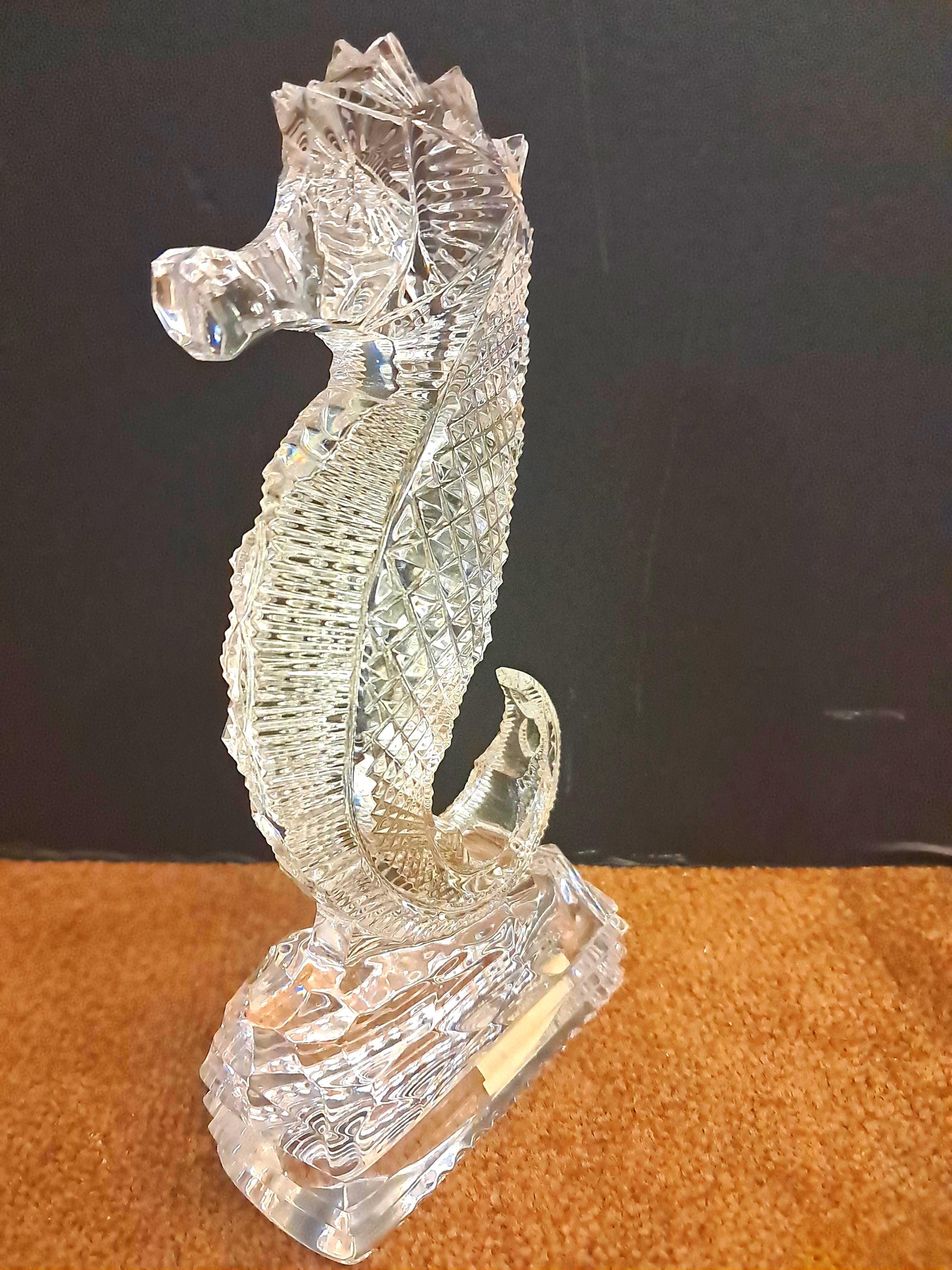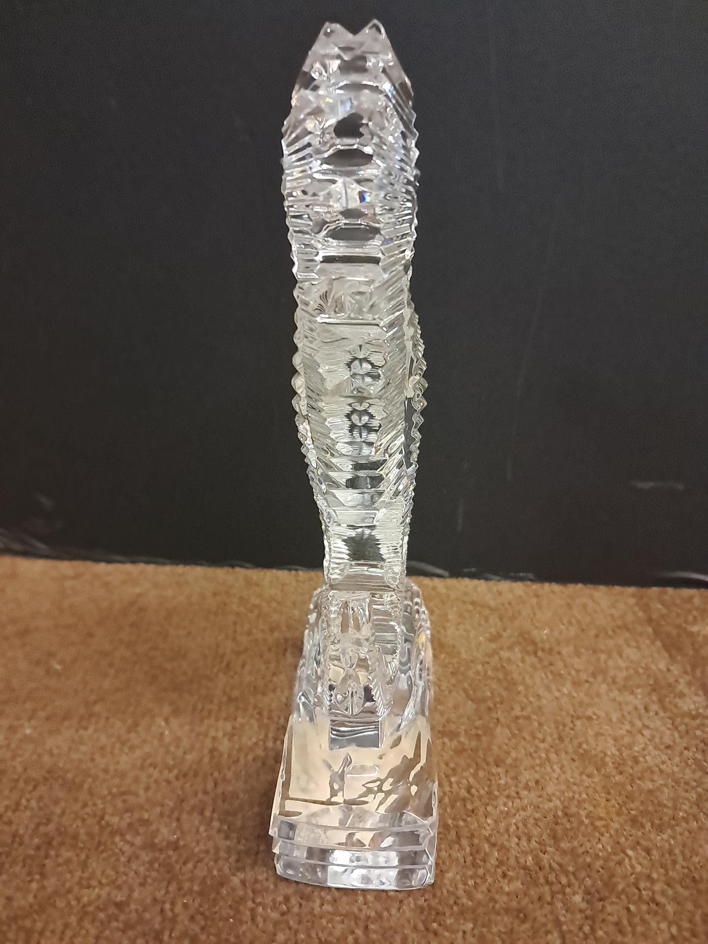 WaterfordCrisscross, Diamond, and Slash cuts, starburst eyes7" Tall, 3-1/4" Long, 1-/2" Wide BaseMade in IrelandClover TailWaterford Gothic-style mark presentExcellent Condition with no damages