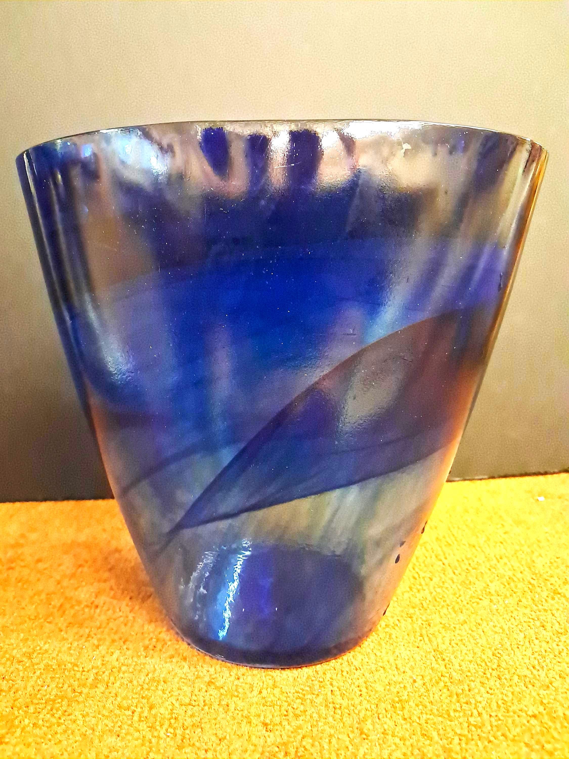 Swirl Design Centrifuged Vase with Veils of Colors within Glass
